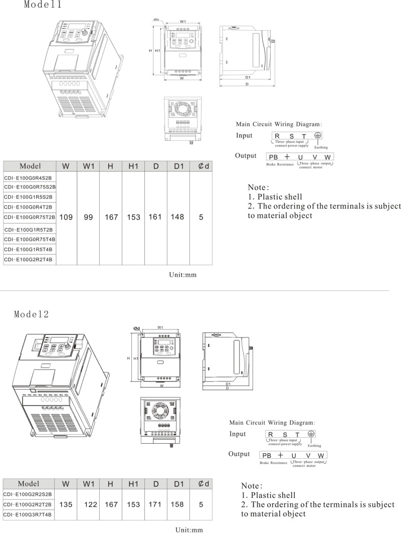 S2(Tek Faz 220V, 50/60HZ, Dahili Frenleme Ünitesi)